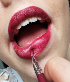 First, (optional) prime your lips by gently exfoliating the dry parts away. You can use granulated sugar and a dab of honey for this then lick it off afterwards. Then apply a tiny, tiny amount of lip balm then dab a little foundation over your lips to make a base for the darker shades (diva and sunburst). Blot, and get ready to apply your lipstick!