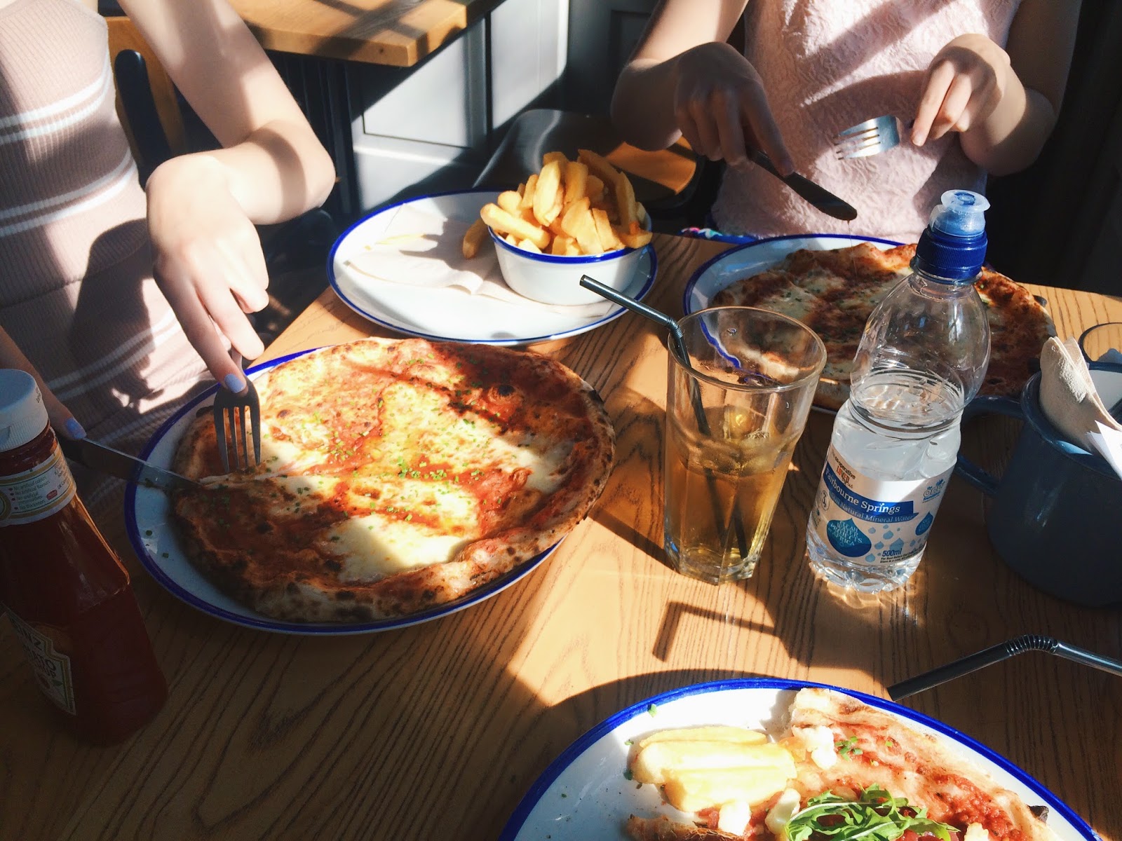 My sisters and I all chose different pizzas to eat in. I had sun-blushed tomato with goats cheese and red onion marmalade and my sisters had a margarita so we swapped pieces and I can vouch that they were amazing! Kind of how Elizabeth Gilbert describes Italian pizza in Eat Pray Love.